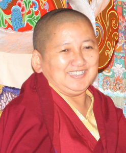 Es la hija mayor de Kyabje Mindrolling Trichen Gyurme Künzang Wangyal, el undécimo sostenedor del linaje Mindrolling, uno de los seis principales linajes Nyingma del Budismo Tibetano.